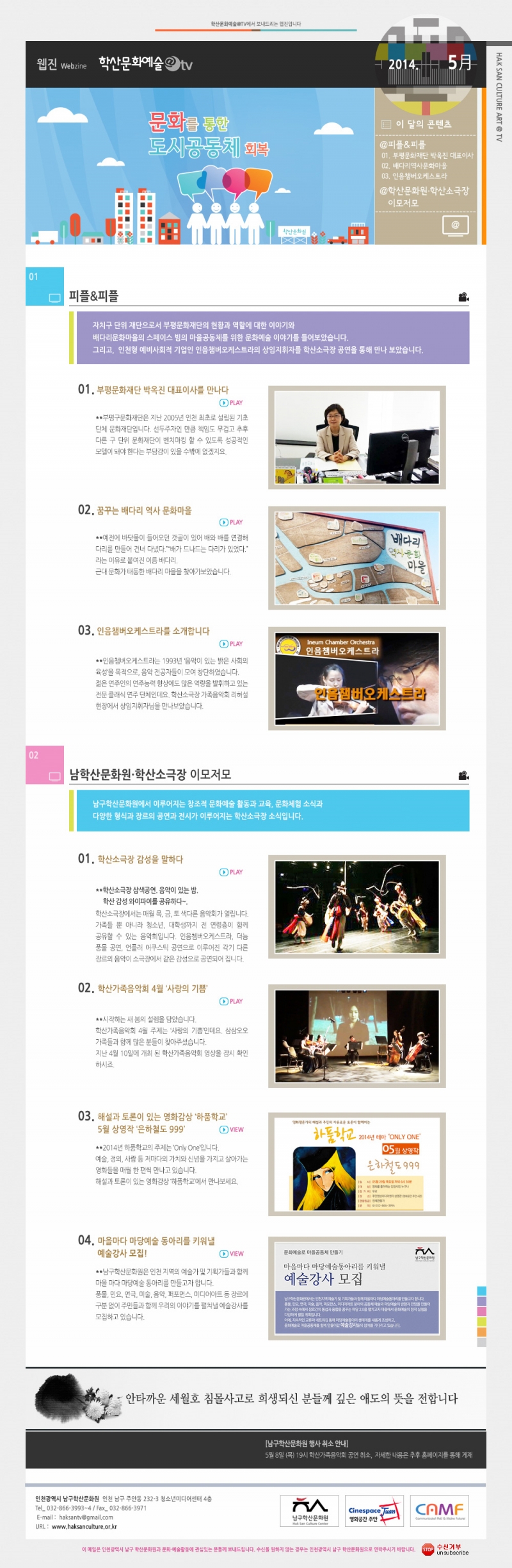 2014년 05월 웹진 관리자 0 7595 2016-03-21 18:11:21 이전글 : 2014년 04월 웹진 다음글 : 2014년 06월 웹진 수정 삭제 목록 댓글목록 이름 비밀번호 등록