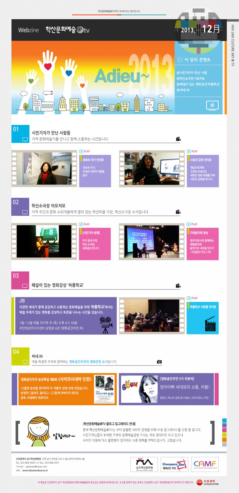 2013년 12월 웹진 관리자 0 7533 2016-03-21 17:33:21 이전글 : 2013년 11월 웹진 다음글 : 2014년 01월 웹진 수정 삭제 목록 댓글목록 이름 비밀번호 등록