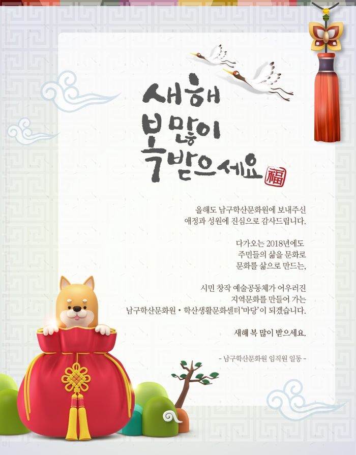 2018년에도 학산문화예술@tv와 함께! 새해 복 많이 받으세요~ admin 0 6397 2017-12-29 17:18:29 이전글 : 2017년 학산문화예술@tv 모바일 웹진 발행안내입니다. 다음글 : 2018년 첫 웹진이 발행되었습니다~ 수정 삭제 목록 댓글목록 이름 비밀번호 등록