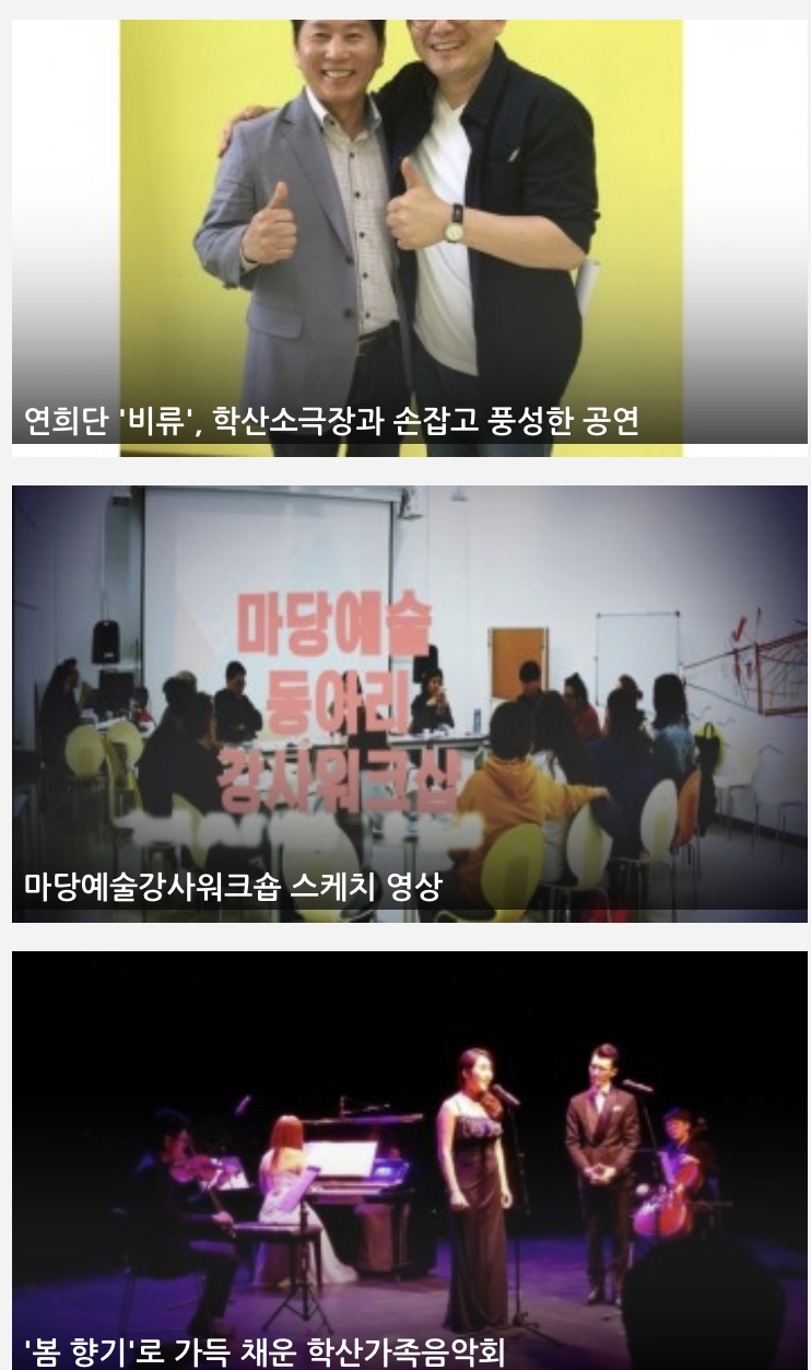 그 외에 문화원의 다양한 공연 홍보글과 주민활동가의 글도 함께 구성됩니다.