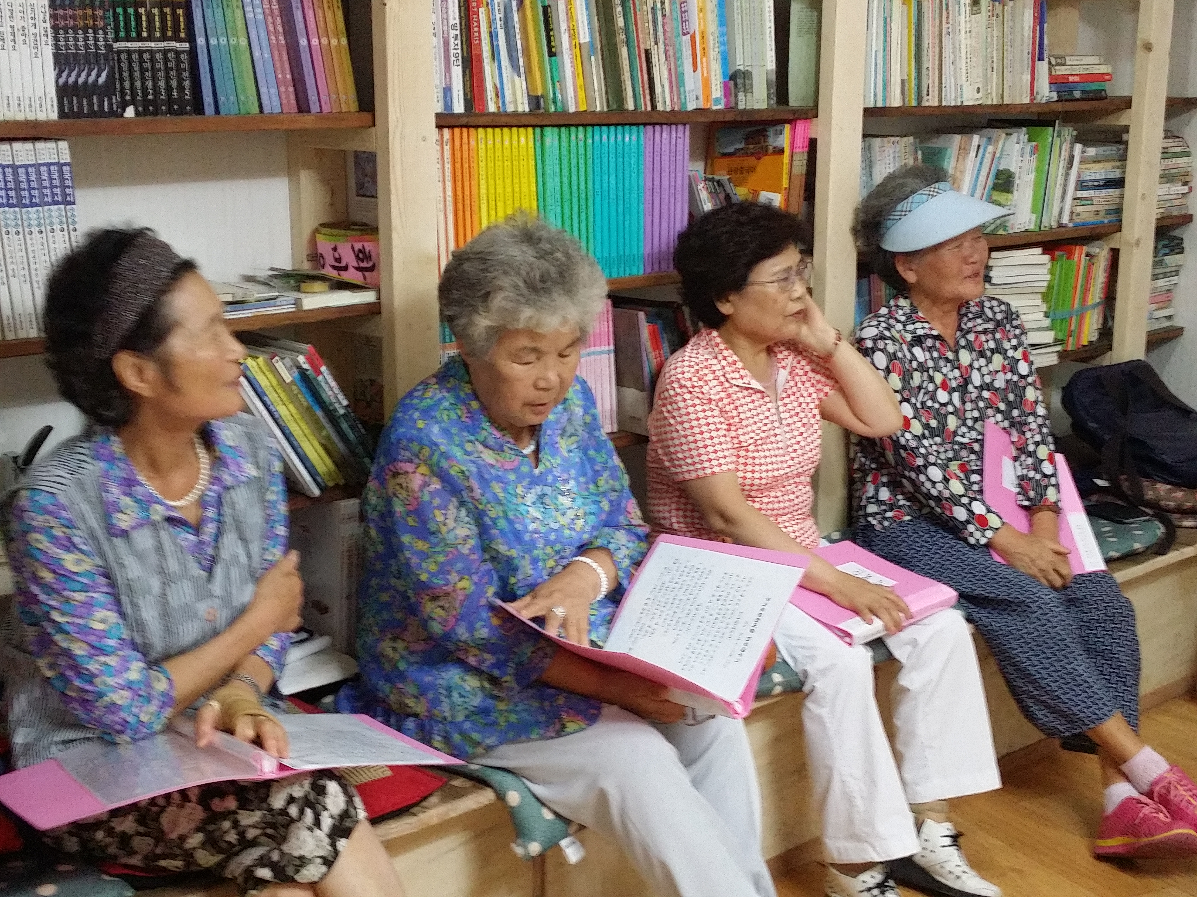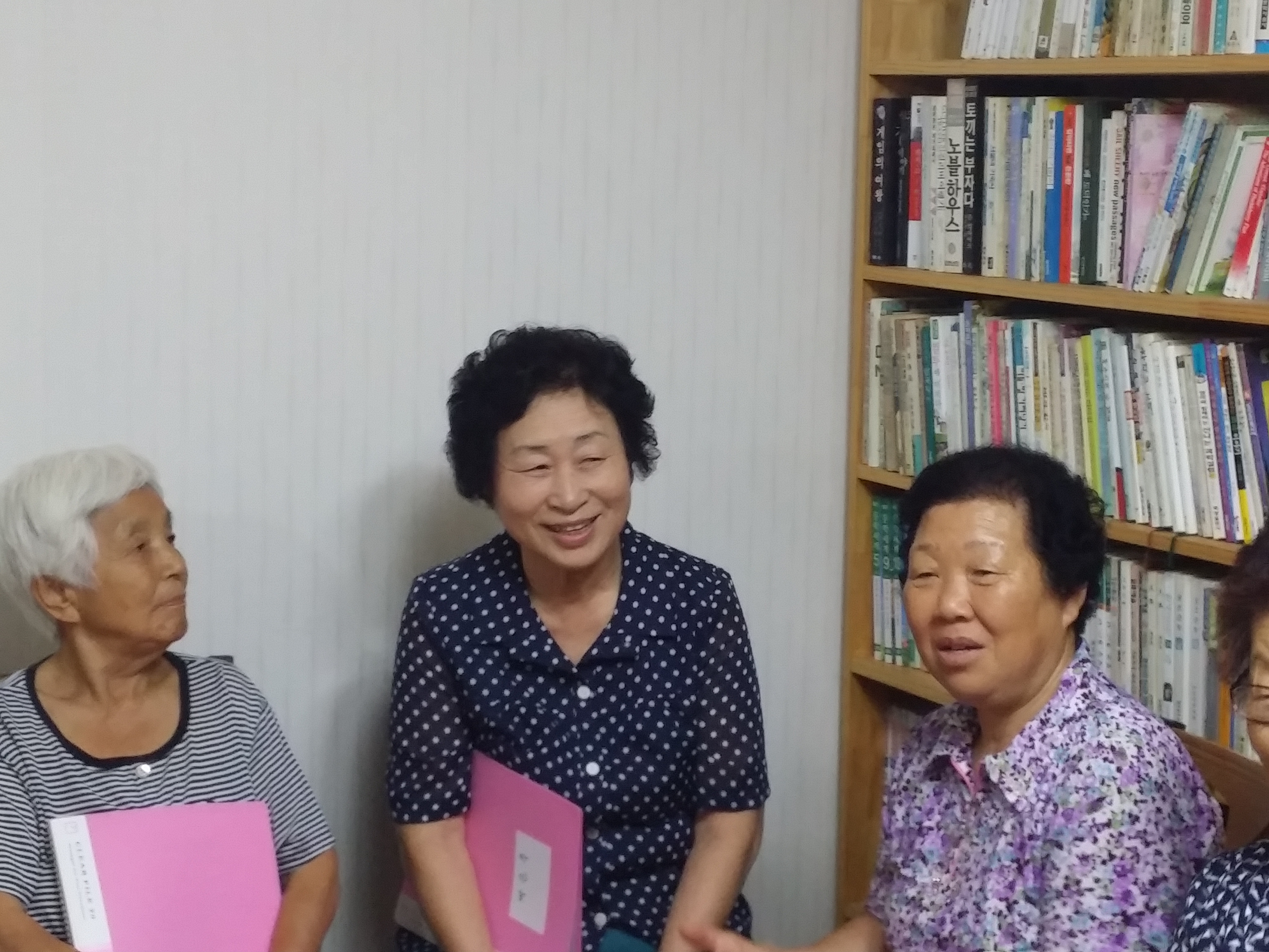 노래를 못해서 배우러 오셨다는 박영순 할머니, 문주란의 ‘동숙의 노래’를 차분하게 부르시고, 백난아의 ‘찔레꽃’을 구성지게 부르신 박순옥 할머니, 이옥순, 홍숙희 할머니 두 분만 못한다고 하셔서 안하시고 돌아가면서 모두 한 곡씩 하셨습니다.