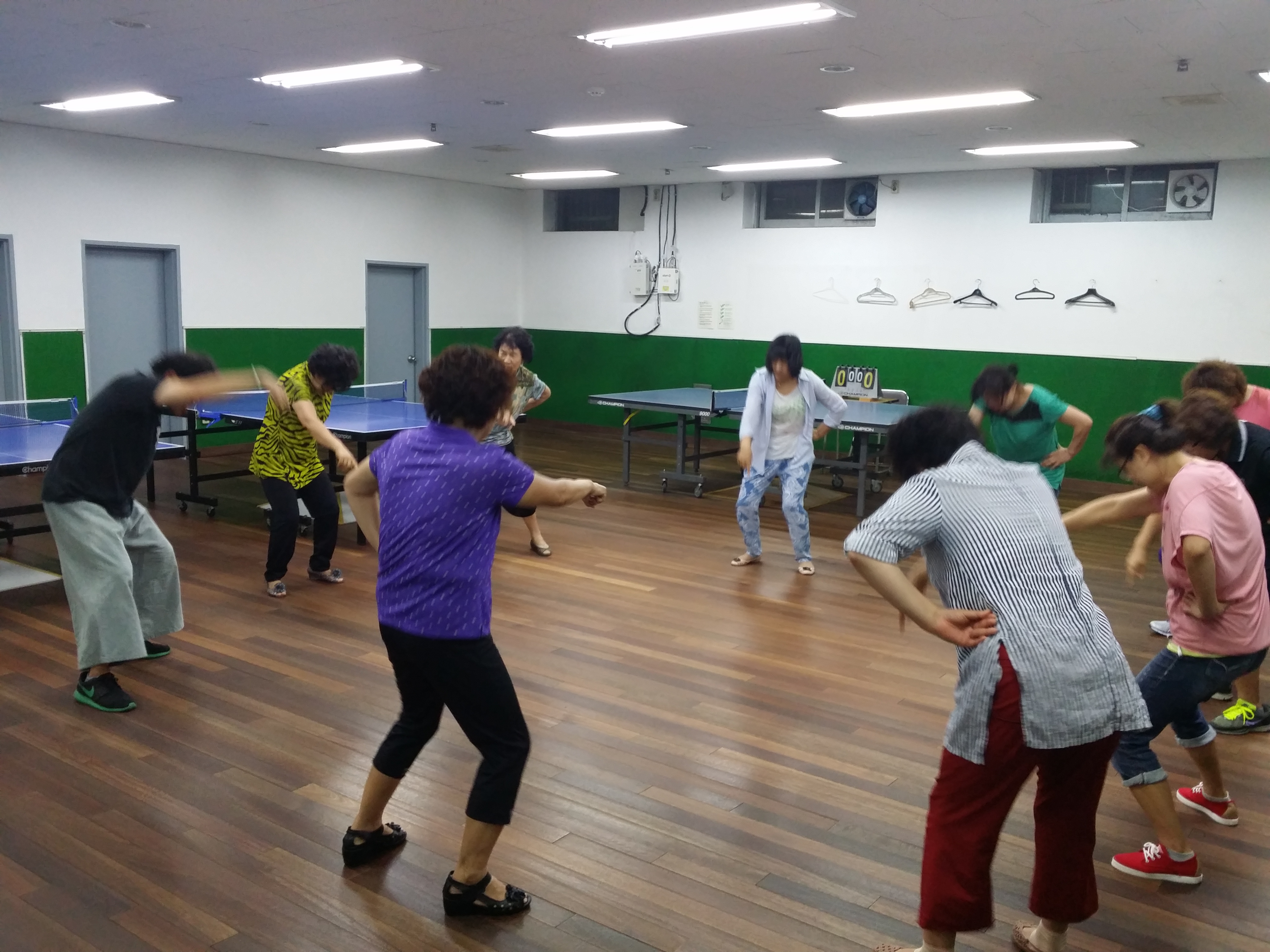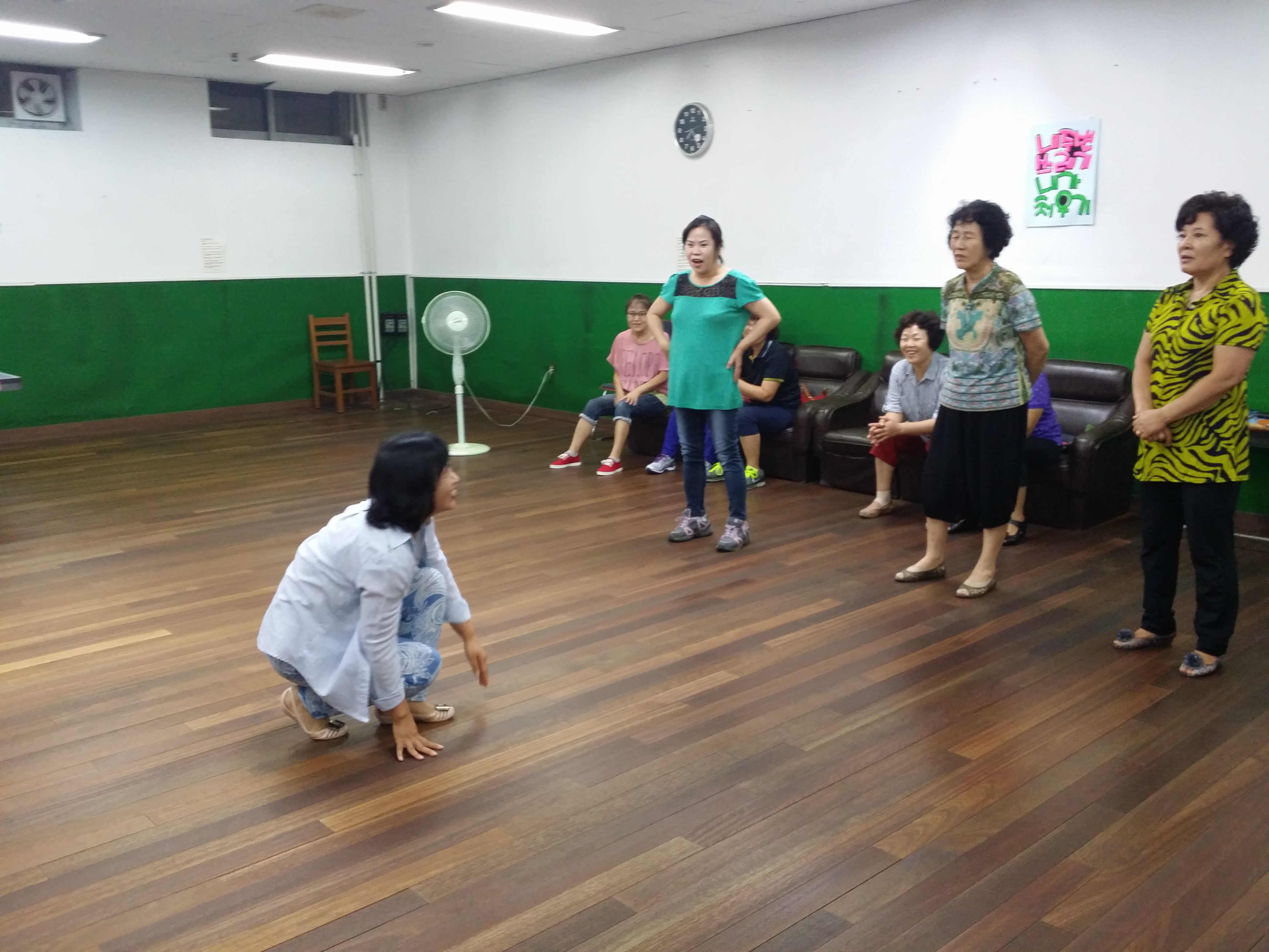 이 곳 탈춤 선생님도 주안 4동 선생님과 동일한 분이신데요, 역시 통장님들의 친목을 위한 스피드 게임으로 수업을 시작했습니다. 통장님들 모두가 여성분들이셨는데요, 어떤 의태어, 의성어도 허용되지 않고 오직 몸으로만 설명해야만 하는 것이 많이 답답했겠죠? 제한 시간은 자꾸 흘러가 마음은 급하고 튀어나오는 건 그저 외마디 말뿐이었습니다. 그 모습에 모두들 한바탕 웃을 수 있었답니다.
