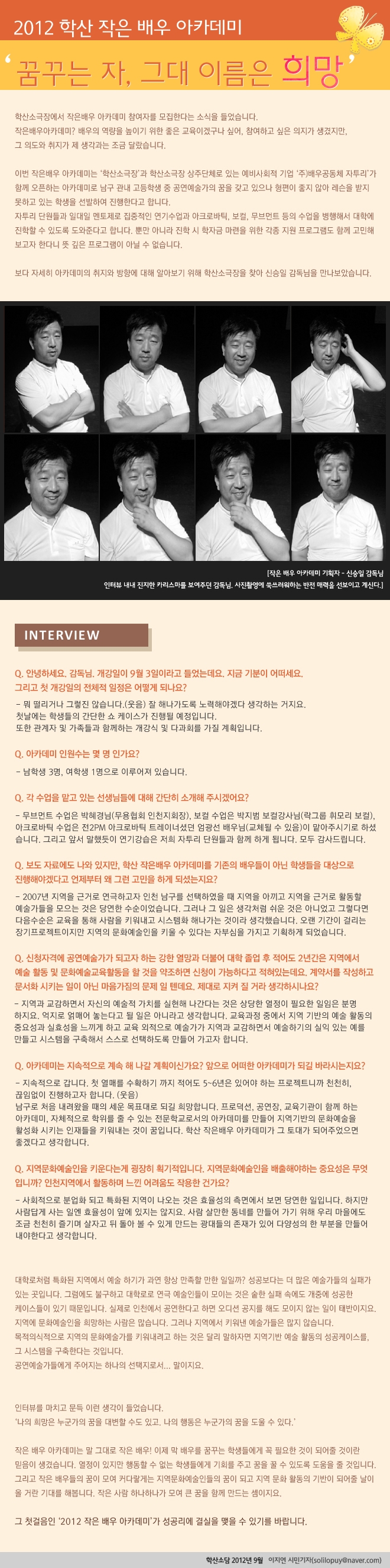 2012 학산 작은 배우 아카데미 admin 0 11757 2012-09-04 10:00:58 - 이전글 : 학산 문화원과 함께 한 역사 기행 다음글 : 동네방네 목소리 팡팡 On Air, 라디오의 매력 목록 댓글목록 이름 비밀번호 등록