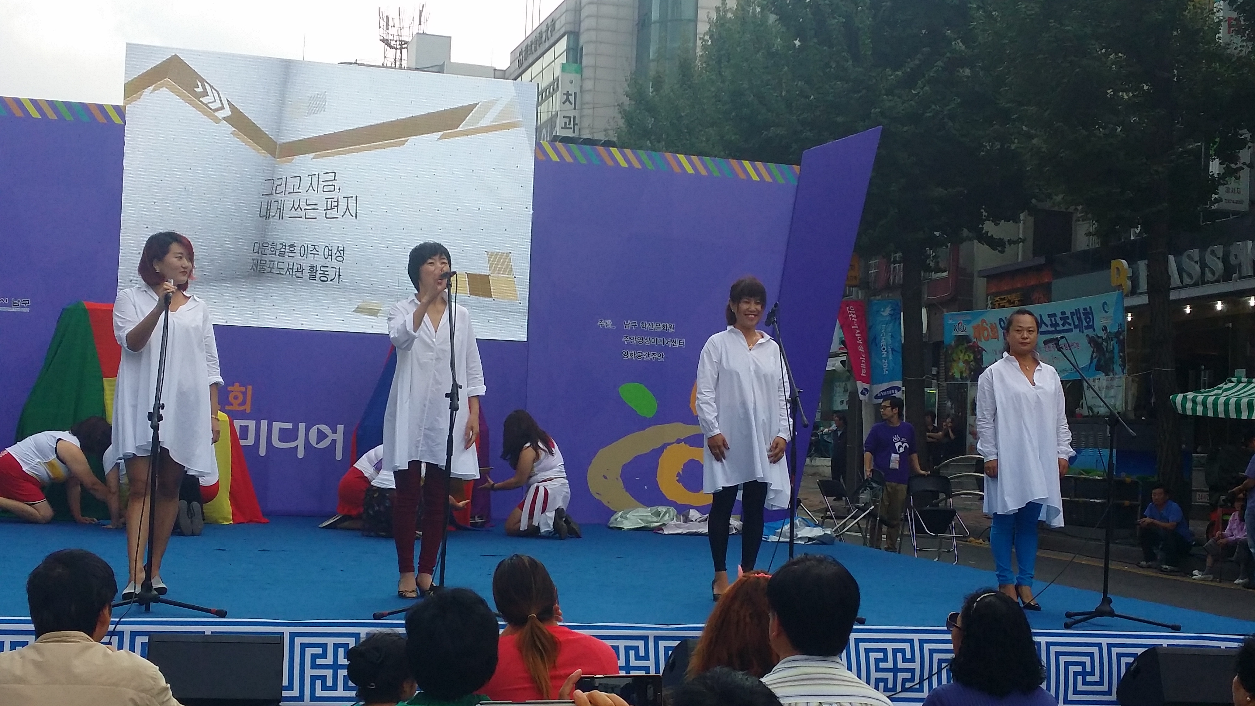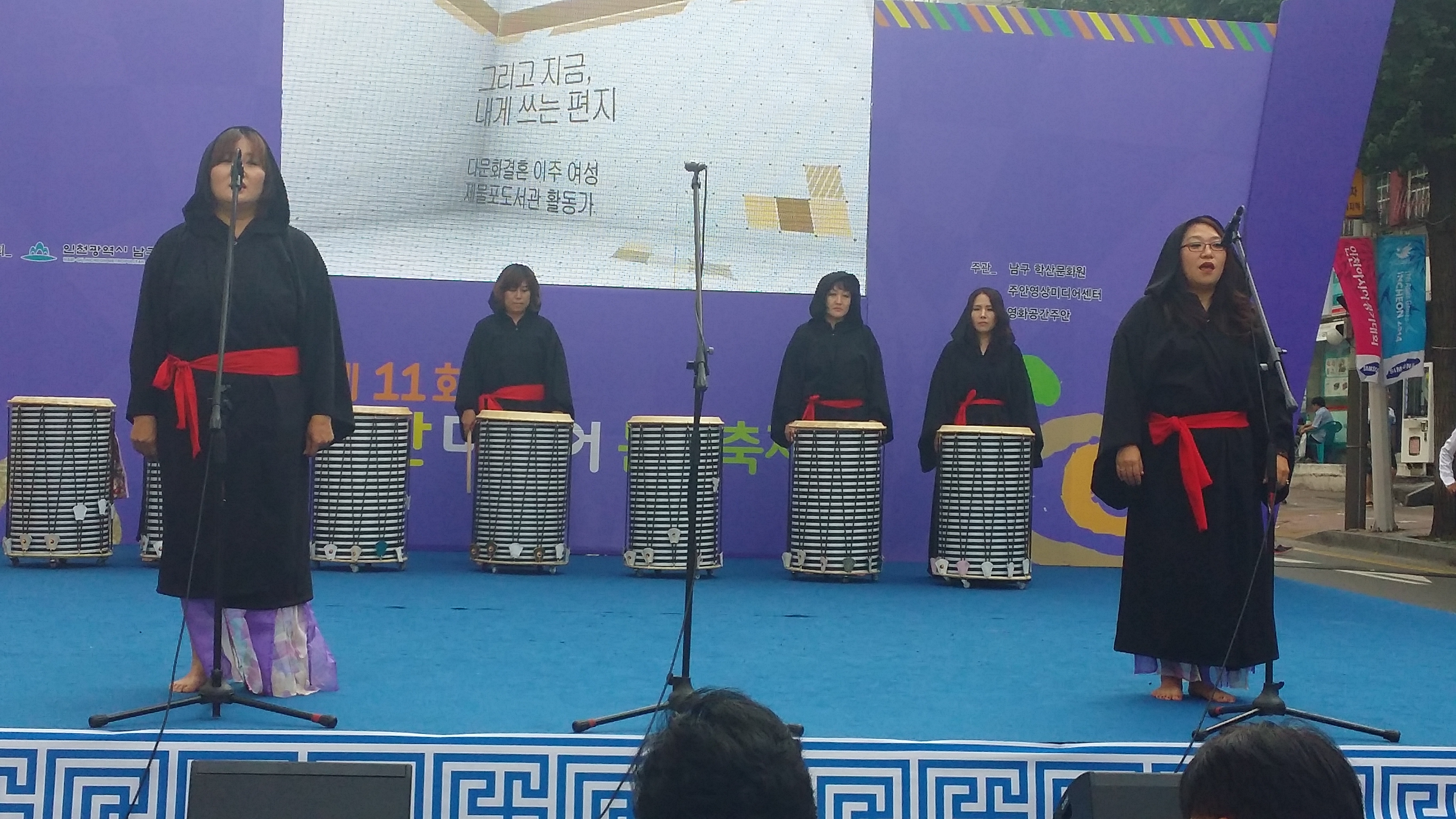 20140927_161201숭의 2동 다문화 팀입니다. 숭의 4동과 2동은 함께 ‘그리고 지금, 내게 쓰는 편지’를 주제로 난타 퍼포먼스를 선보였답니다. 한국말을 잘 몰라 소통의 어려움도 있었지만 무대에서 공연한다는 기대감으로 매 시간 즐겁게 연습했답니다.