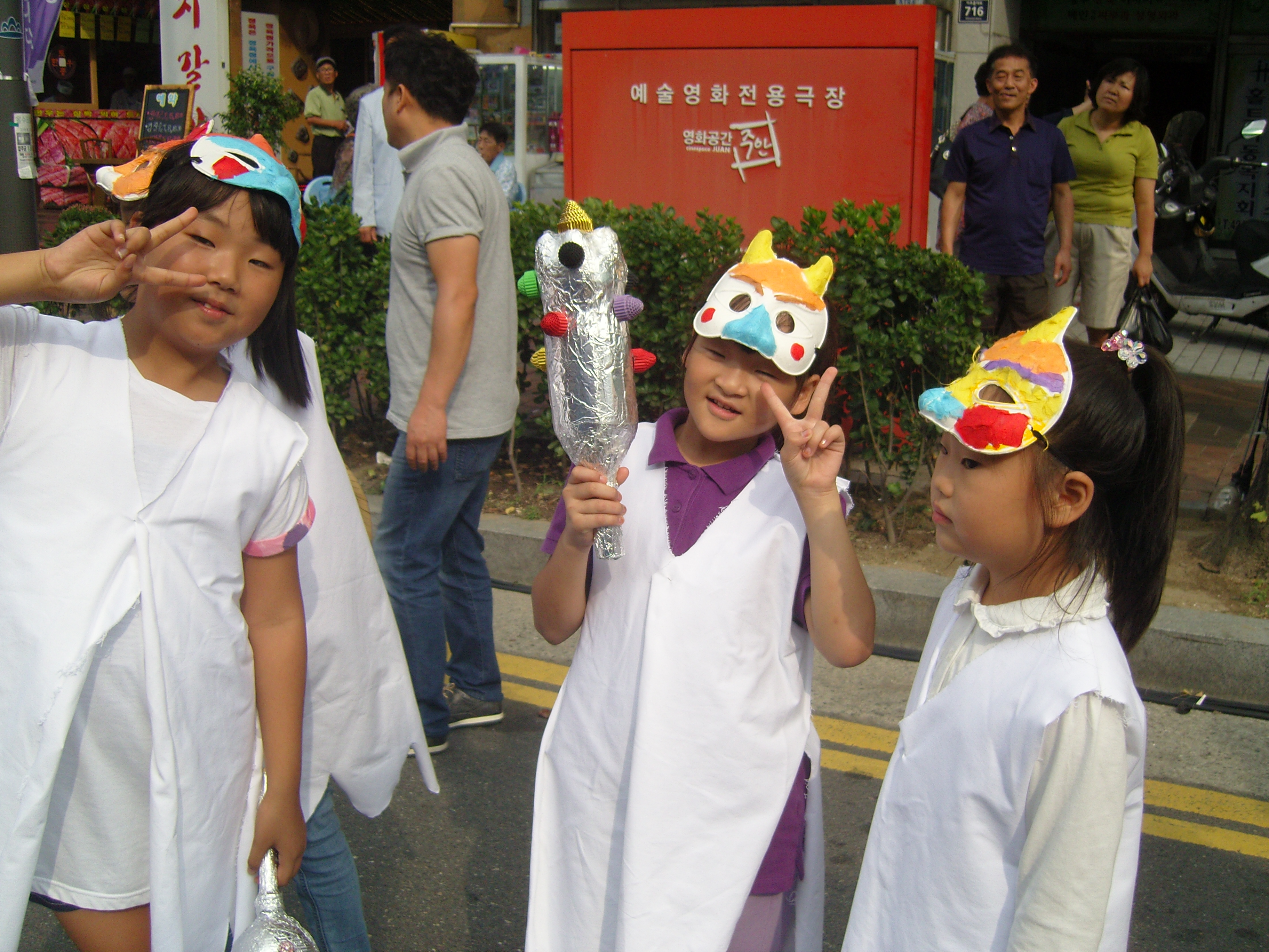 SAMSUNG DIGITAL CAMERA관교동 큰나무도서관을 이용하는 아이들, 문학산 전설인 술바위를 각색해 연극을 했답니다. 카메라를 보고 깜찍한 포즈를 취해주네요.