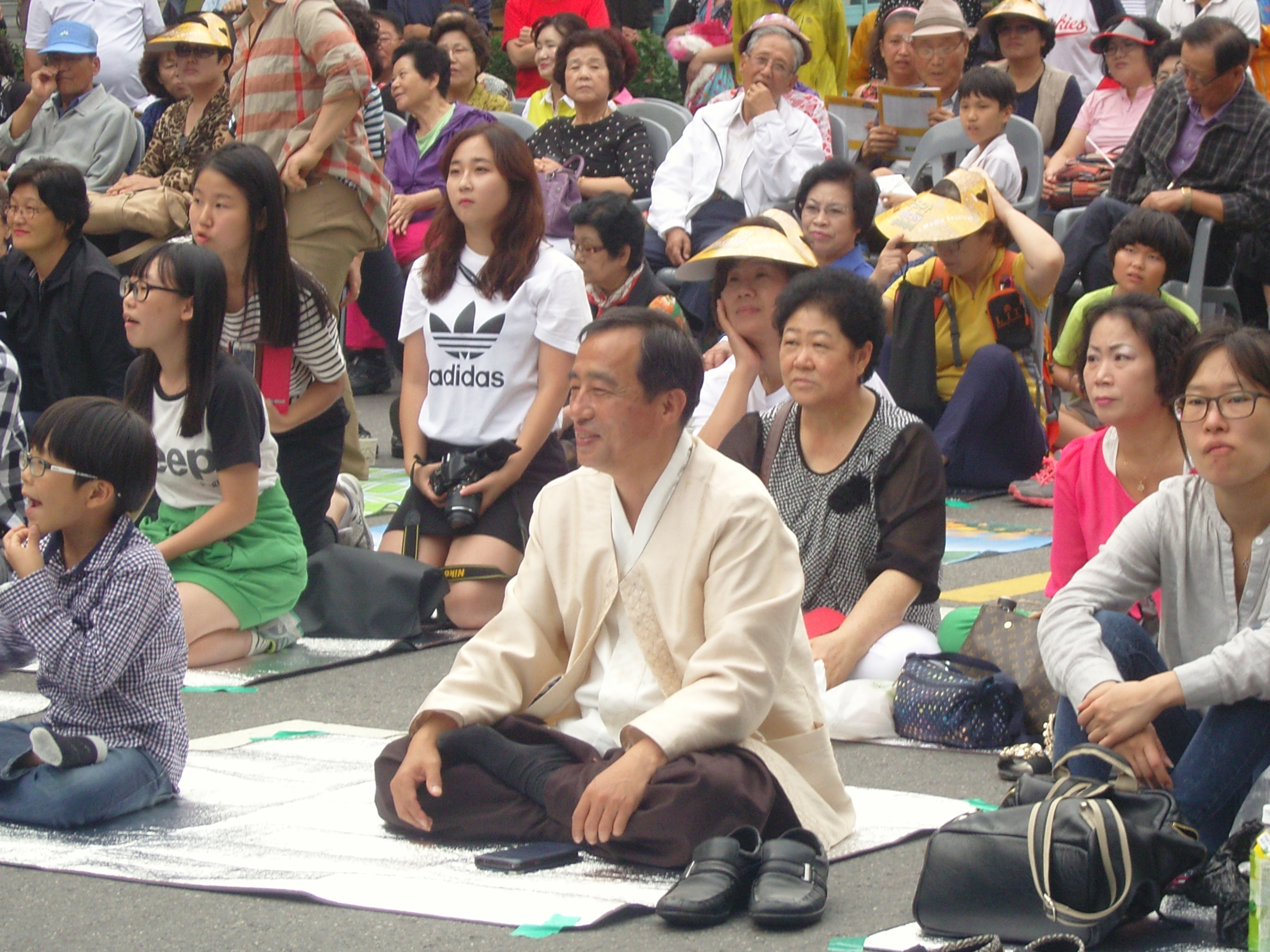 SAMSUNG DIGITAL CAMERA관교동 통장님들이 리허설을 하고 있습니다. 도로 한가운데 앉아 도움을 주시는 반승환 선생님, 사물놀이를 쉽게 가르쳐주신다며 통장님들께 인기도 좋았답니다.