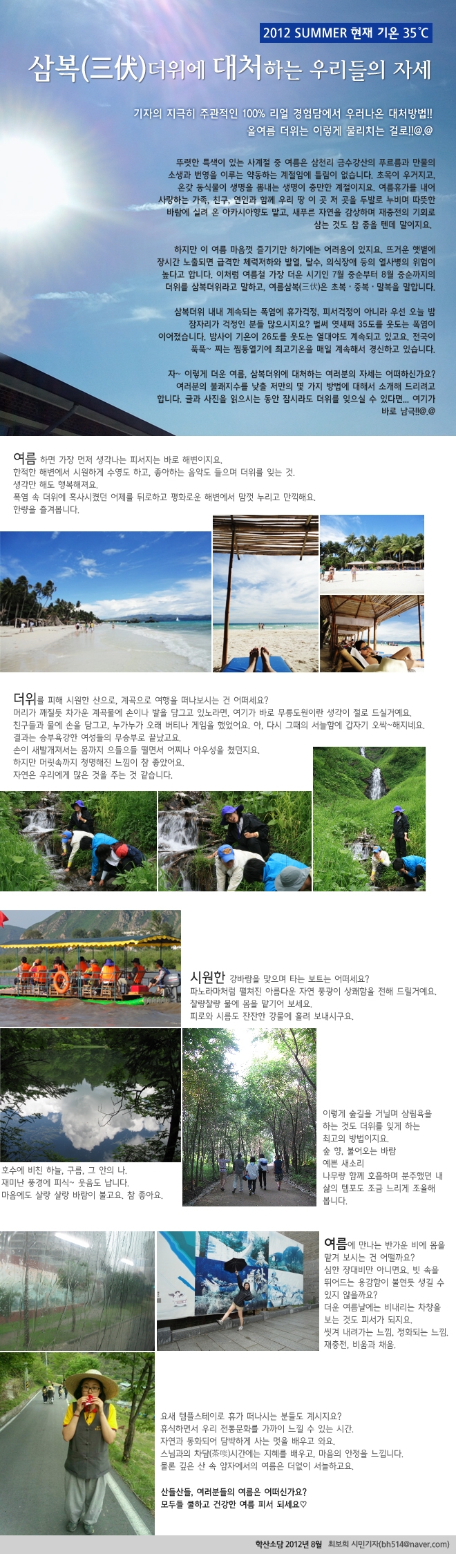 삼복더위에 대처하는 우리들의 자세 admin 0 10371 2012-08-07 10:00:52 - 이전글 : 제8회 인천여성영화제 - 시민기자의 단소리 쓴소리 다음글 : 커피 그리고 여행 목록 댓글목록 이름 비밀번호 등록