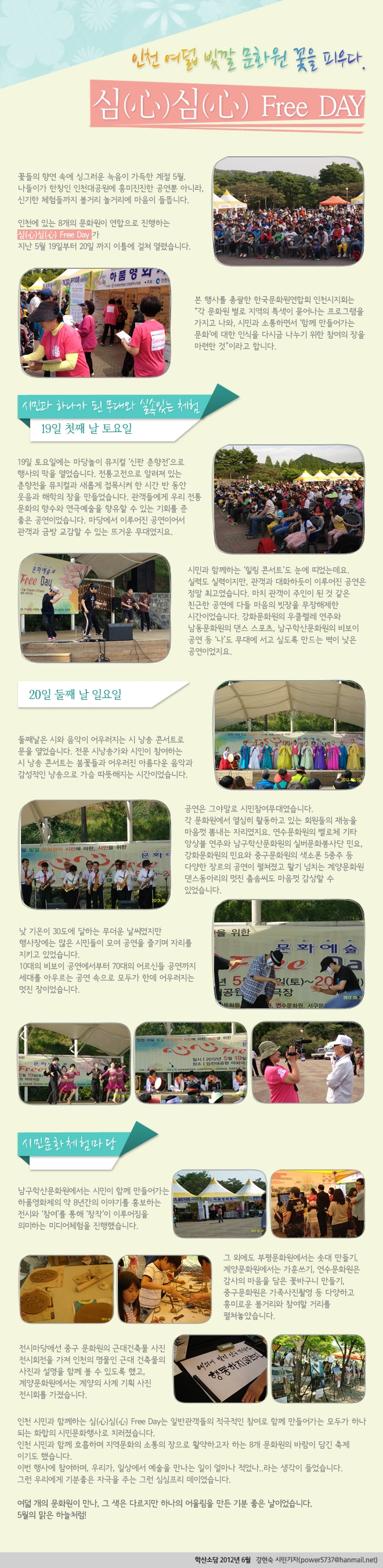 인천 여덟 빛깔 문화원 꽃을 피우다 心心FreeDay admin 0 11523 2012-06-05 10:00:48 - 이전글 : 칼국수집 할머니 다음글 : 얘들아! 같이 놀자 [상상놀이극] 목록 댓글목록 이름 비밀번호 등록