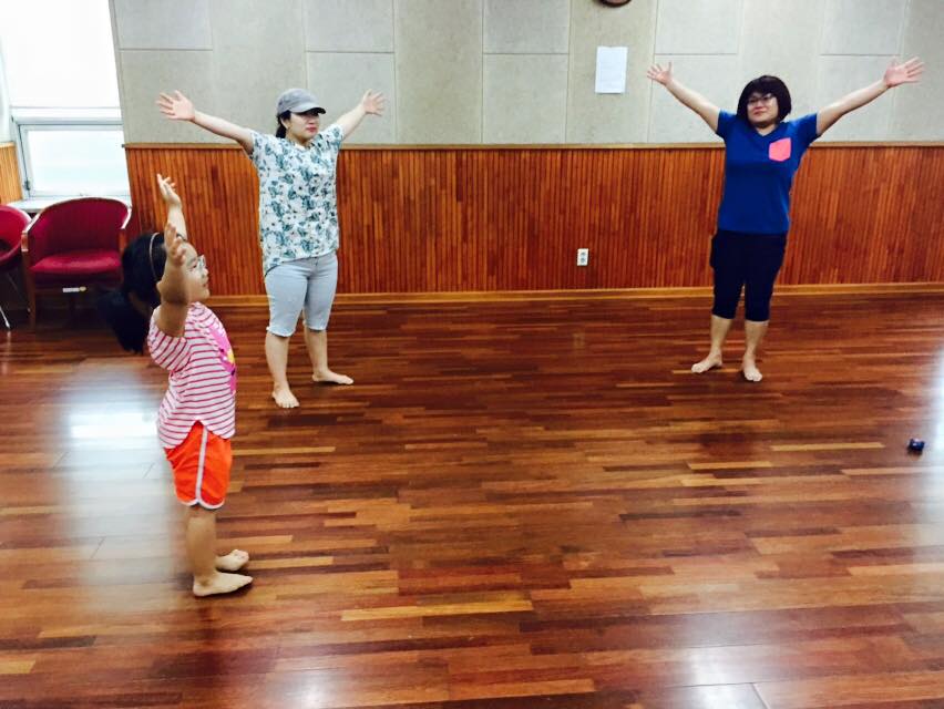 "엄마랑 같이 움직이며 춤추는 것은 처음이예요. 재미있어요. 나는 엘사 할래요."