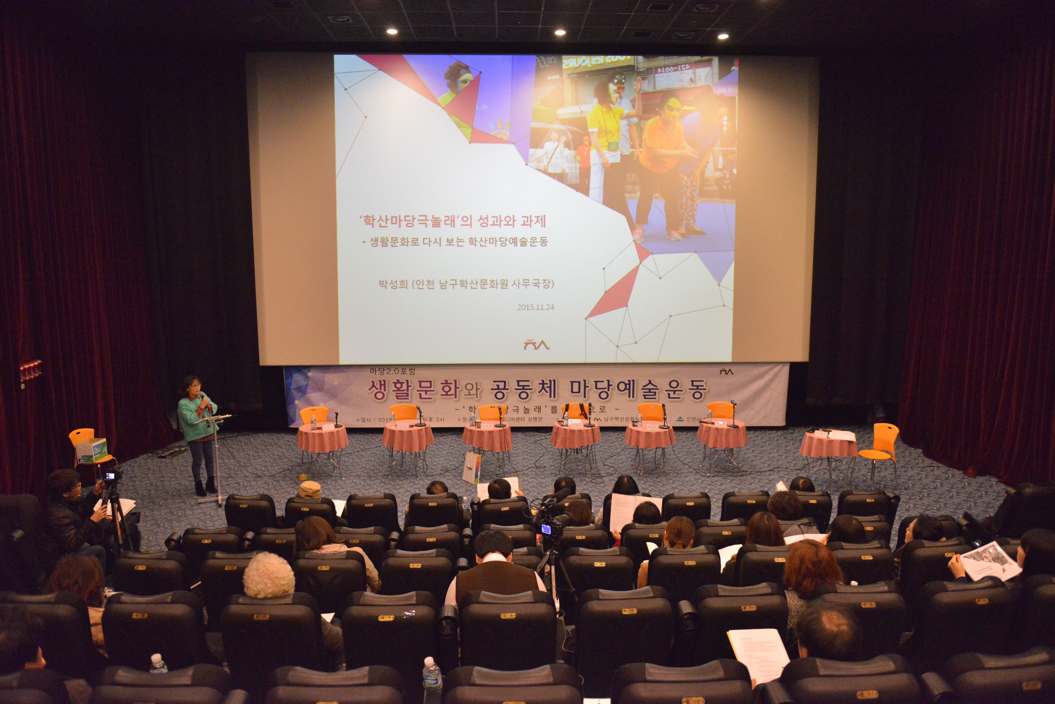 그리고 1부의 마지막에는 남구학산문화원 박성희 사무국장님의 ‘학산마당극놀래’의 사례 발표가 있었습니다. 2012년을 시작으로 2015년 마당극놀래의 변화된 모습과 성과를 한 눈에 볼 수 있는 소중한 자리였습니다.