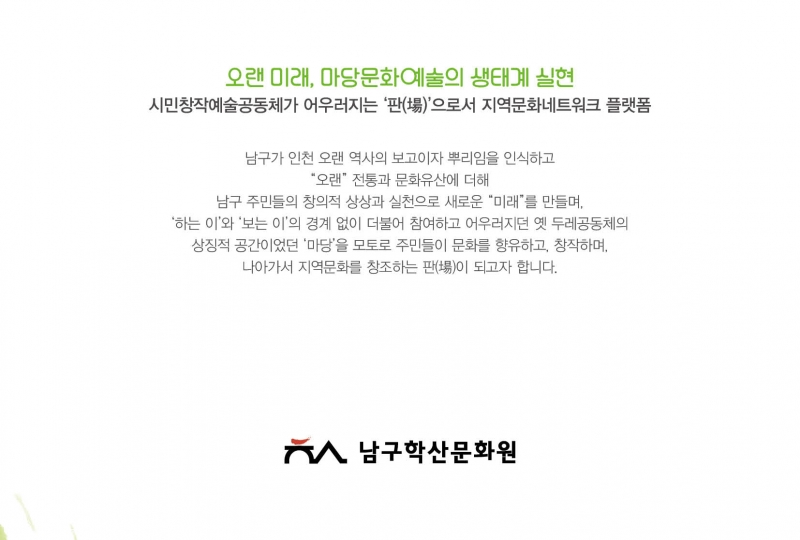 남구 주민들과 문화예술 관계자의 많은 관심과 참여 바랍니다.