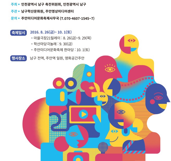 주안미디어문화축제, 8월26일부터 한달간 열린다 주민이 만들어가는 마을극장21 릴레이 페스티벌 학산 0 8616 2016-07-01 18:34:01 이전글 : 학산춤패, 푸르게 다 덮을 때까지 다음글 : 용현3동 풍물단 2016년 첫모임 목록 댓글목록 이름 비밀번호 등록