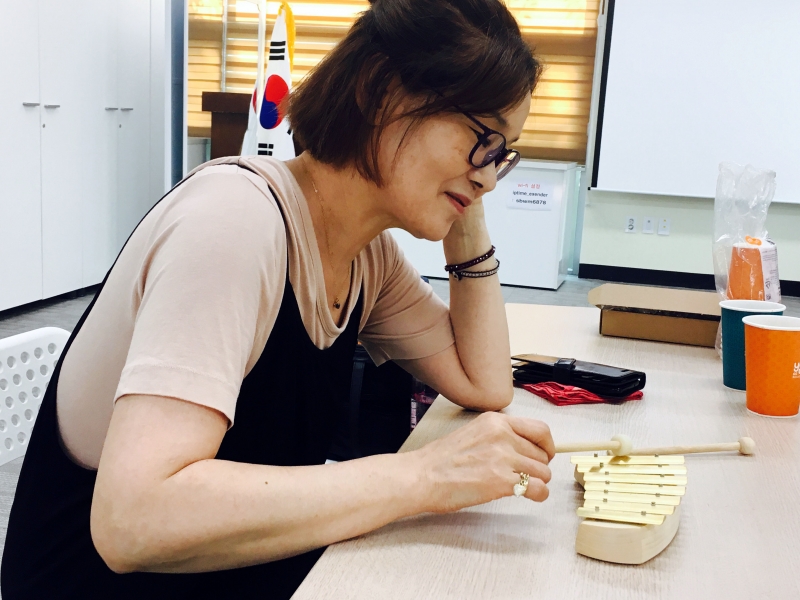 이 악기는 "글로켄슈필"이라고 합니다. 공명 소리가 참 사람의 마음을 울리는데요, 막대로 통통 치면 예쁜 소리가 납니다. 그래서 오늘은 이 글로켄슈필 음악에 맞춰 8자를 만들기로 했습니다. 소리와 리듬의 변화에 따라 몸 동작도 바꿔주기로 했죠! 첫 시작은 물방울입니다. 자그마한 물방울에서 점점 커지기도 하고, 다시 작아지기도 했습니다. 저번주 보다 더 자연스러운 몸짓에 엄청 놀랐습니다.