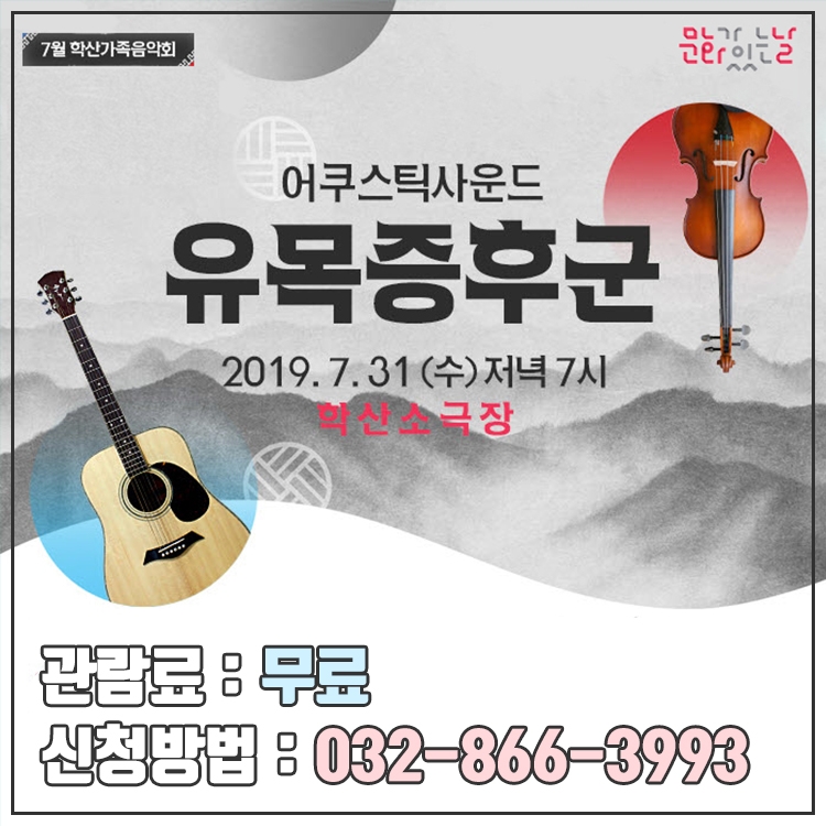 2019 학산가족음악회 7월 공연 <유목증후군> 국악과 첼로, 어쿠스틱 사운드가 어우러진 오늘날의 아리랑! 이선별 0 8682 2019-07-22 09:48:12 이전글 : 다문화 마당예술동아리 <클로벌> 의 상황극! 다음글 : 주안6동 마당예술동아리 <늴리리야> 목록 댓글목록 이름 비밀번호 등록