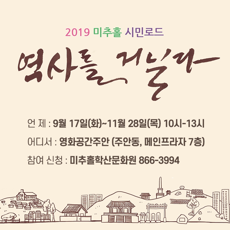 2019 미추홀 시민로드 <역사를 거닐다> 박수빈 0 8973 2019-10-02 16:19:47 이전글 : \'문화시민 육성이 문화도시로 가는 지름길\' 다음글 : 10월 학산어린이극 목록 댓글목록 이름 비밀번호 등록