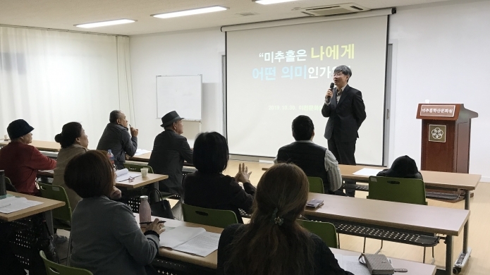 10월 30일 오후 '2019 미추홀 시민로드Ⅱ-미추홀 시민기록자 양성교육'이 시작된 미추홀학산문화원에는 20여 명의 예비 시민기록자들이 자리를 함께 했다. 백발의 할머니부터 가정주부까지 다양한 주민들이 강의장을 채웠다.