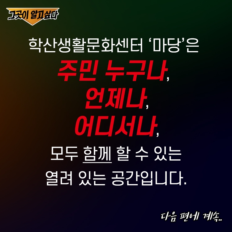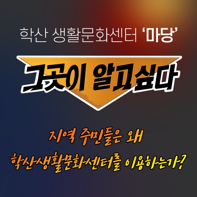 그곳이 알고싶다 - 그 두 번째 이야기 지역주민들은 왜 학산생활문화센터를 이용하는가? admin 0 8779 2019-11-06 10:36:40 이전글 : [우리 동네 기억하며 놀래?] 다음글 : 11월 학산가족음악회 목록 댓글목록 이름 비밀번호 등록