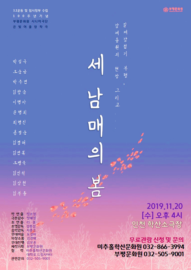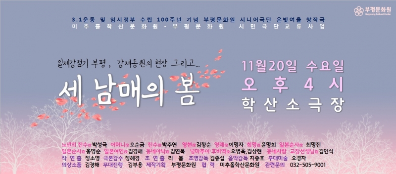 [시민극단 교류사업 - 세 남매의 봄] 부평문화원 시니어극단 은빛여울의 공연 admin 0 8907 2019-11-12 20:46:21 이전글 : <미추홀운전사> 음악 콜라보 공연! 다음글 : 11월 우리도예술가 공연 목록 댓글목록 이름 비밀번호 등록
