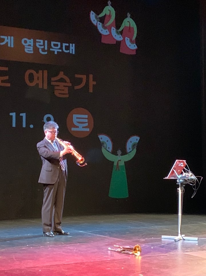귀기울여들었습니다. 트럼펫으로 부른 가요들! 생각보다 큰 소리에 소극장안이 꽉차는 소리로 가득했어요!