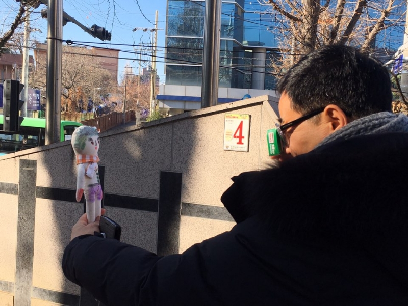 한 손에는 반려인형을, 또 다른 한 손에는 필름 카메라를 들고요.