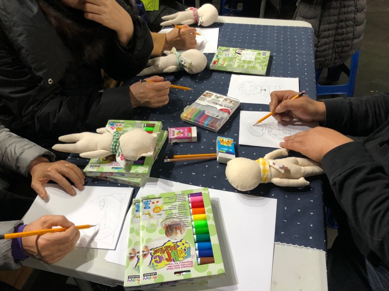 그 후엔 예쁘게 직접 인형에 그려보는데요,정말 모두들 초집중상태였답니다!