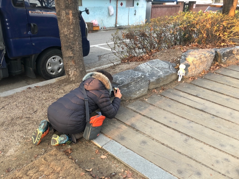 마지막으로 주인선 철도에 서있는 것처럼 땅에 내려놓고 또 찰칵!