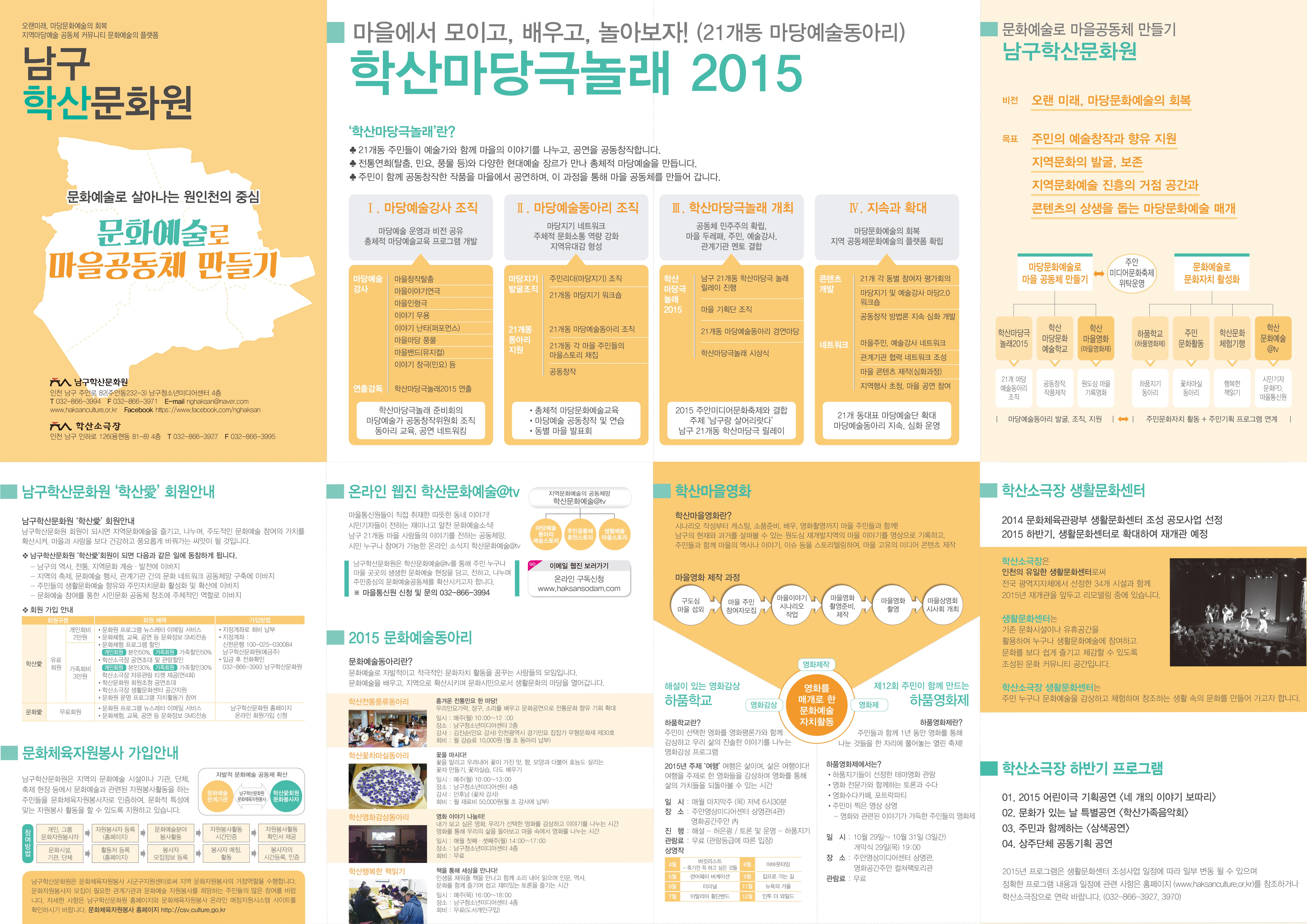 2015 남구학산문화원 사업안내 admin 0 13931 2013-04-01 00:05:17 2015 남구학산문화원 사업안내 이전글 : 여우실 다음글 : 디자인에 대한 새로운 생각 목록 댓글목록 이름 비밀번호 등록