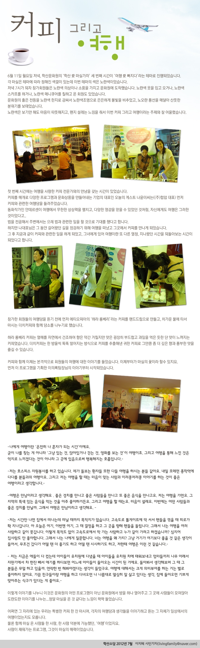 커피 그리고 여행 admin 0 11357 2012-07-02 10:00:26 - 이전글 : 삼복더위에 대처하는 우리들의 자세 다음글 : <감성과 이성이 자라는 소리> 마음을 열고 생각을 키워요 목록 댓글목록 이름 비밀번호 등록