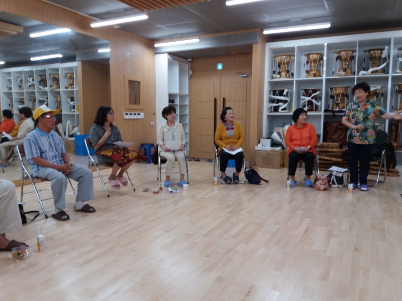 장구에 흥이나신 엄만석어르신! 산지기와 극의 추임새를 맡으셨네요!