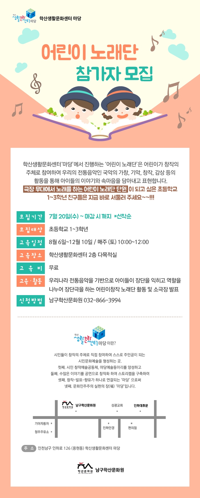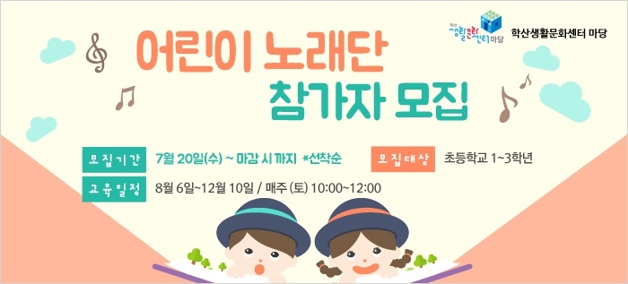 어린이 노래단 참가자 모집 어린이가 창작의 주체가 되어 노래하다 sheep 0 8424 2016-08-03 16:57:47 이전글 : 8월 하품학교 ' 와일드' 다음글 : 남구 주민 누구나 공간을 빌려드립니다. 목록 댓글목록 이름 비밀번호 등록
