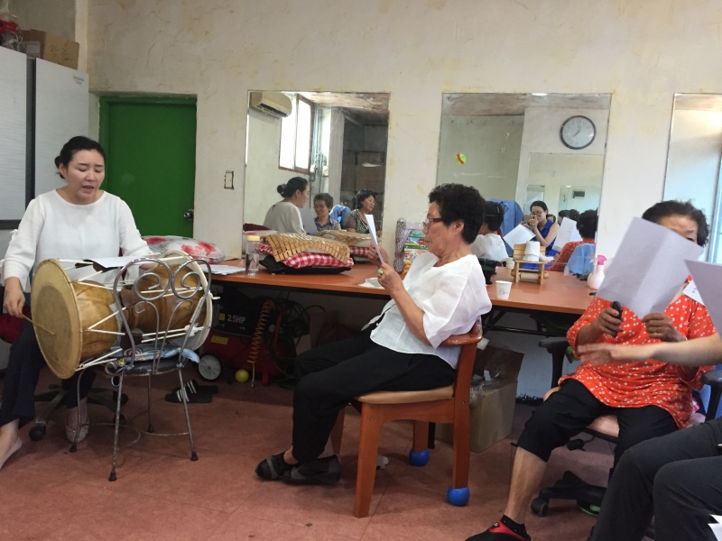 수업 시작후 선생님께서 어르신들과 자연스럽게 이야기를 나누시고,