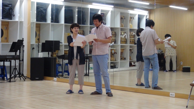 봉사마누라는 여주인공이니까 섬세한 연기가 필요하걸랑요!!열심히 원고를 숙독(熟讀)하는 넙죽역! 백순영샘