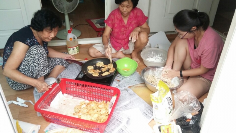 추석날, 홀몸 어르신들을 위한 음식을 만들다
