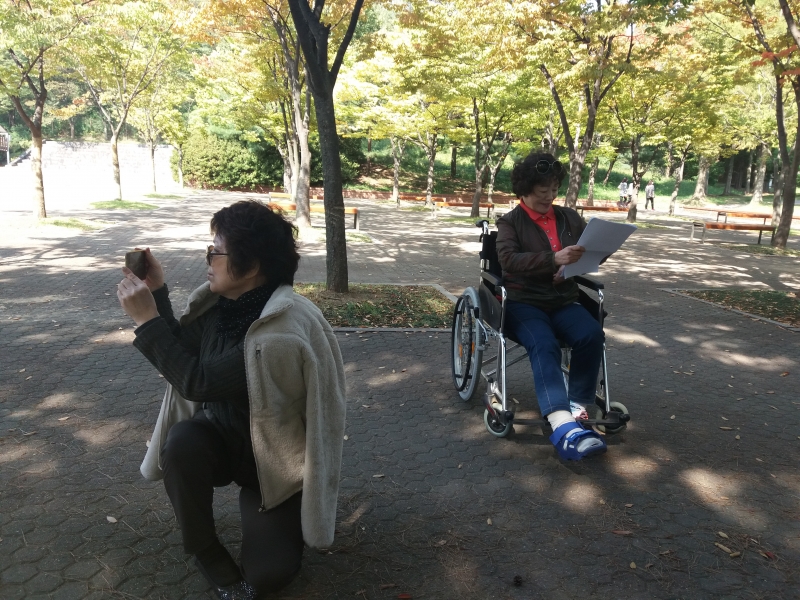 김인자샘님이 휠체어차로 오시고 백의천사 백순영샘이 뒤에서 밀고... 정말 멋있고도 흐뭇한 광경이네요!