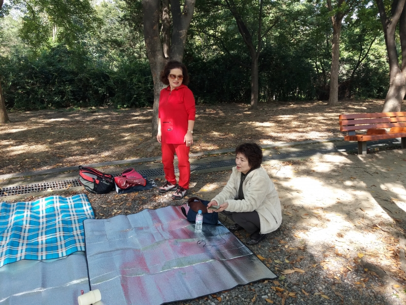자! 자리를 잡았으니 여장을 풀고 알뜰 살림꾼 이영숙 백순영샘님이 돗자리 깔리 완료! 수고혔시유!