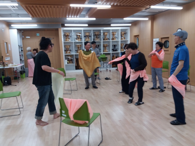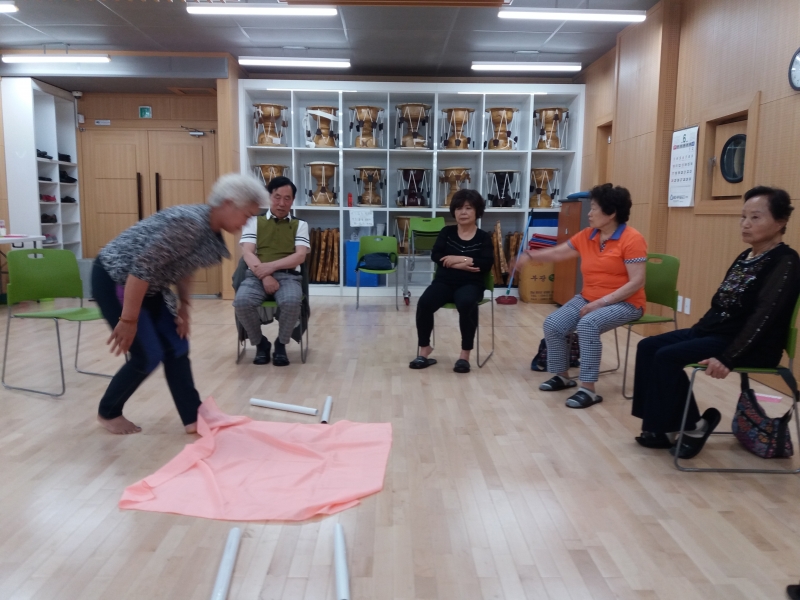 보자기와 막대기 4개로 의미(意味)있는 모형만들기!ㅎㅎ! 이로써 똑부러지게 모든 어르신들의 개성,취향, 순발력,단합심을 찿아냈네요!! ㅎㅎ 딴따라샘님!! 멋져부러!!