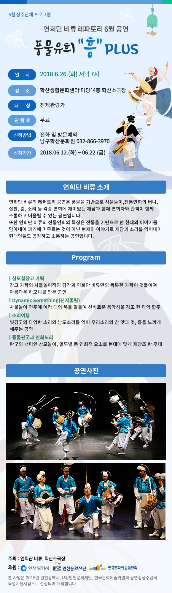 2018년 5월 부터 11월까지 레파토리, 창작, 퍼블릭 프로그램 등 다양한 공연을 함께 할 [연희단 비류]와의