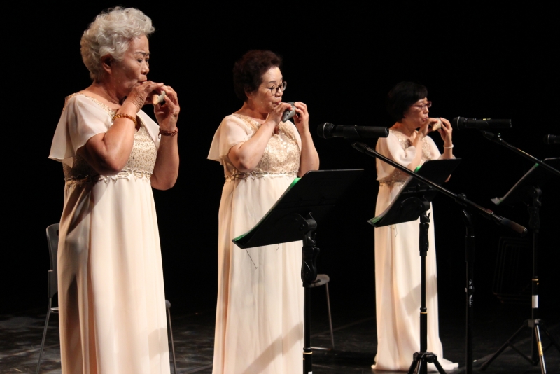 고운 드레스와 함께 오른 '아름 오카리나' 팀의 두 번째 공연 순서