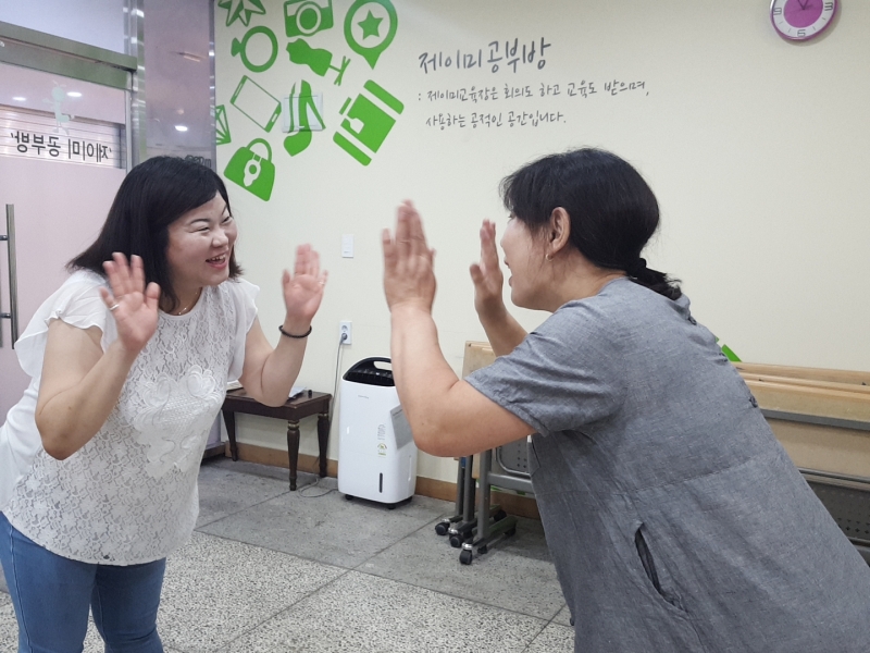 짜잔~ 최금예 마당예술강사님과 도화1동 마당예술동아리원들이 함께 열심히 수업하고 있는 현장입니다
