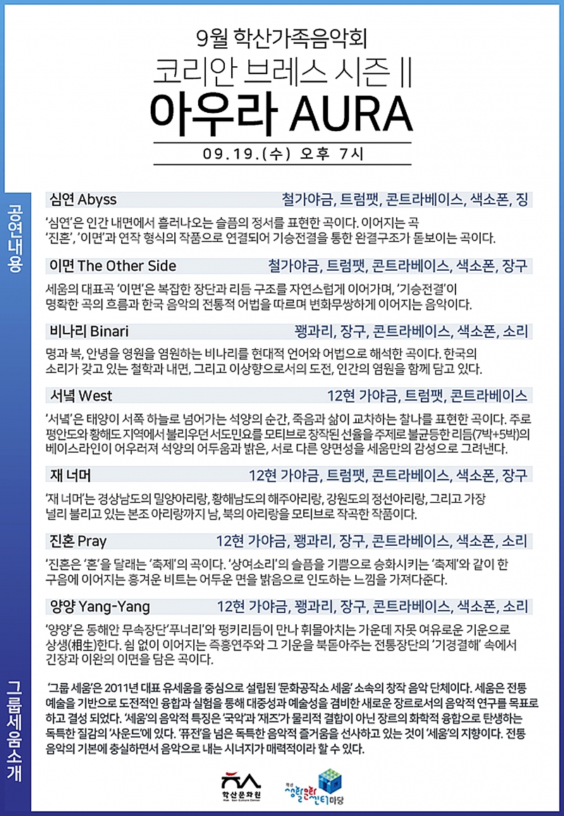 '퓨전'을 넘어선 독특한 음악적 즐거움을 선사하는 '세움'만의 <아우라AURA>