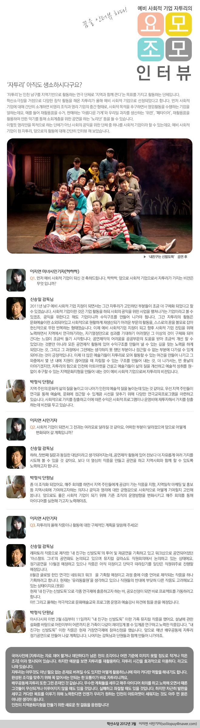 꿈을 인터뷰하다! '자투리' admin 0 10508 2012-03-06 10:00:39 이전글 : 우리 동네 가수 탄생 '즐거운 노래교실' 다음글 : 신바람 어르신들, 이팔청춘 예쁜 꽃으로 피어나다 목록 댓글목록 이름 비밀번호 등록