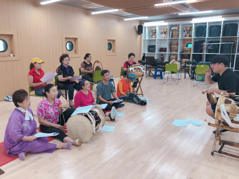매주 수요일 오전10시~12시 2시간 가량 수업 진행. 풍물 기초부터 사물놀이 및 풍물작품을 진행하며, 중반기에 들어 ‘학산마당극놀래’ 마당극 작품 작업.