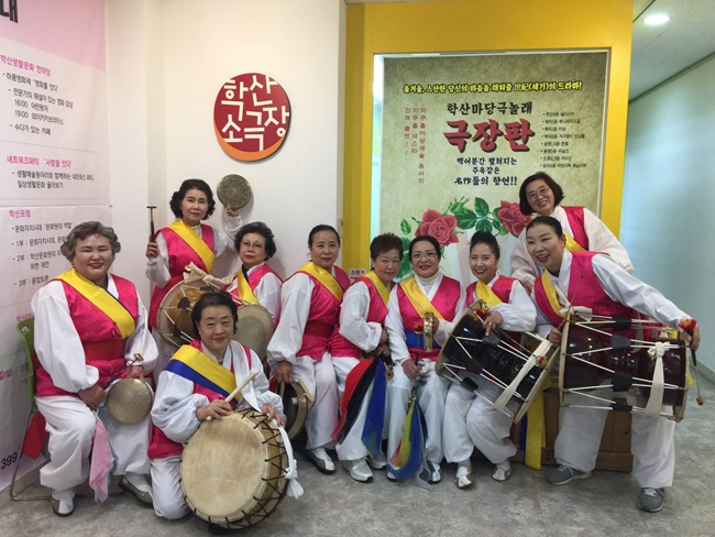 이날 공연에는 늴리리야(주안6동)를 비롯해 학나래두드림(학익1동), 마냥(학익1동), 개구쟁이 모난돌(학익2동), 한결(용현1·4동), 우날쓰(용현5동), 어수선(도화2·3동), 치맛자락휘날리며(숭의4동) 등 8개 마당예술동아리 출연진과 가족 100여 명이 소극장 자리를 가득 채웠다.