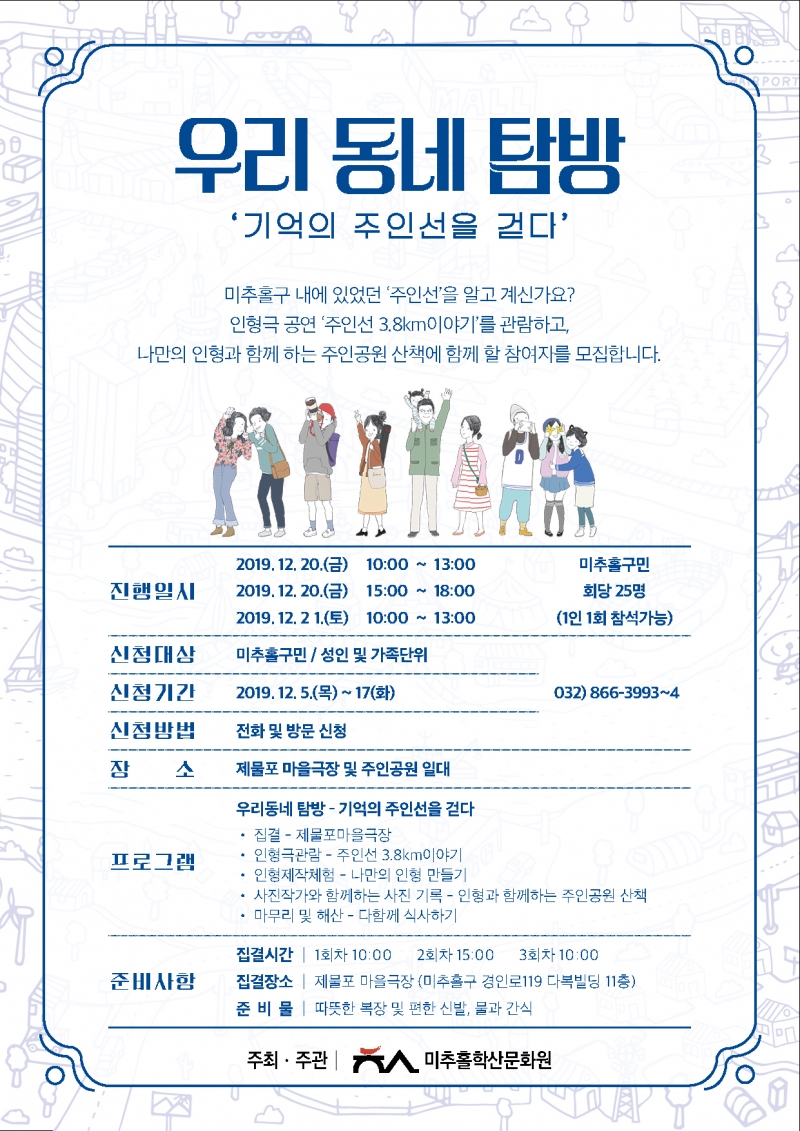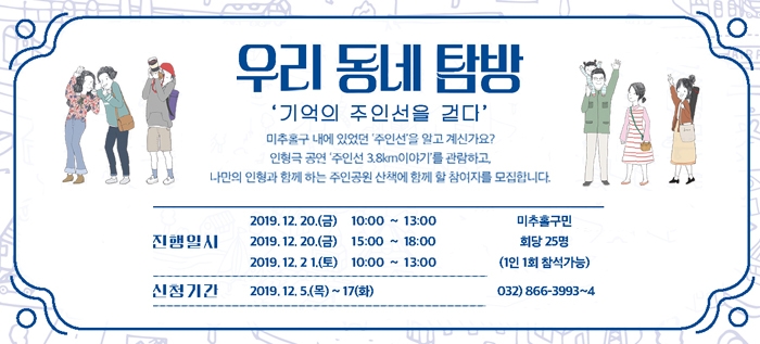 우리 동네 탐방 '기억의 주인선을 걷다' 미추홀구 내에 있었던 \'주인선\'을 알고 계신가요? admin 0 9047 2019-12-10 17:39:51 이전글 : 겨울 마실-동백 꽃이 활짝! 다음글 : 학산마당예술동아리의 공연작품 탄생기 목록 댓글목록 이름 비밀번호 등록